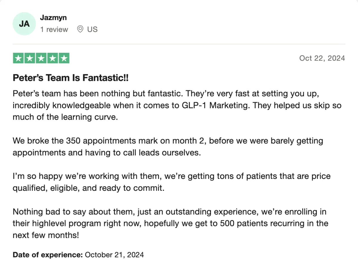 Our lead conversion process is tailored to your practice’s unique requirements. During onboarding, we collaborate with you to define your ideal patient profile, which we then utilise during our qualification process to ensure every patient meets your criteria. This includes in-depth discovery calls and a comprehensive assessment of each patient’s pain points, desired outcomes, and clinical history. We confirm pricing, secure deposits, and ensure that every patient arrives informed, qualified, and prepared to begin treatment.