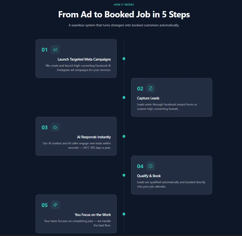 We build, launch, and manage your entire lead generation and conversion system — so you can focus on completing jobs, not chasing leads.